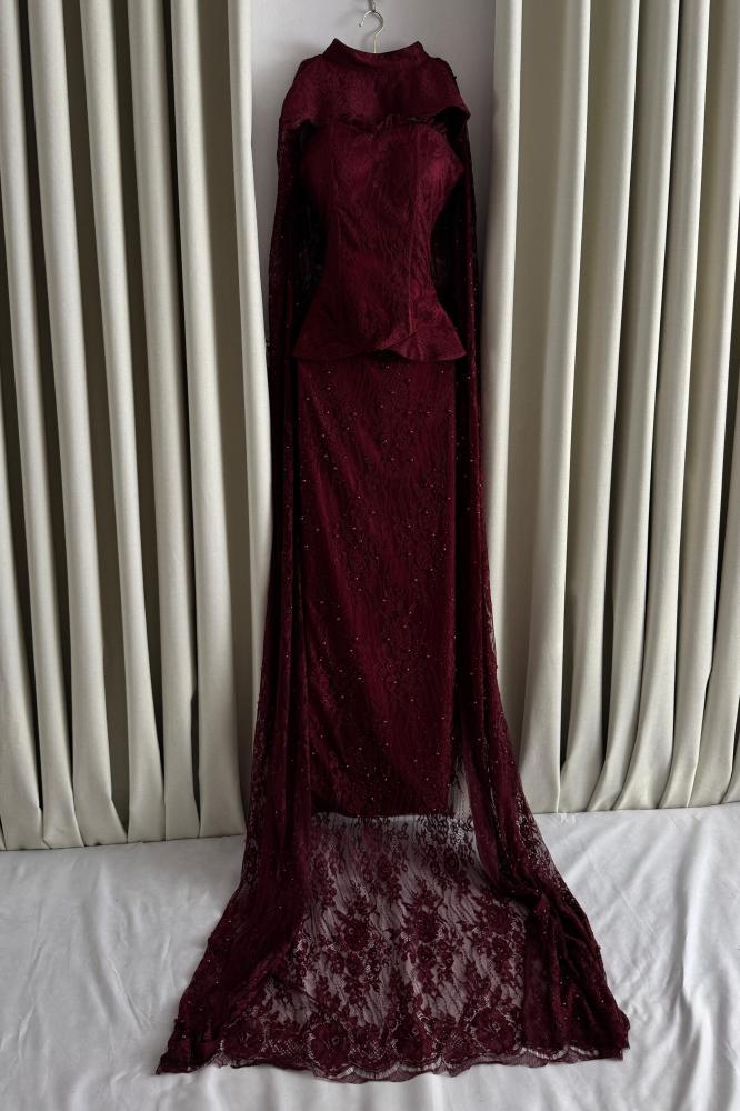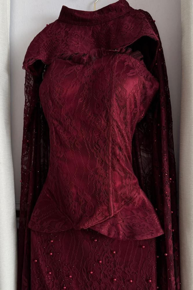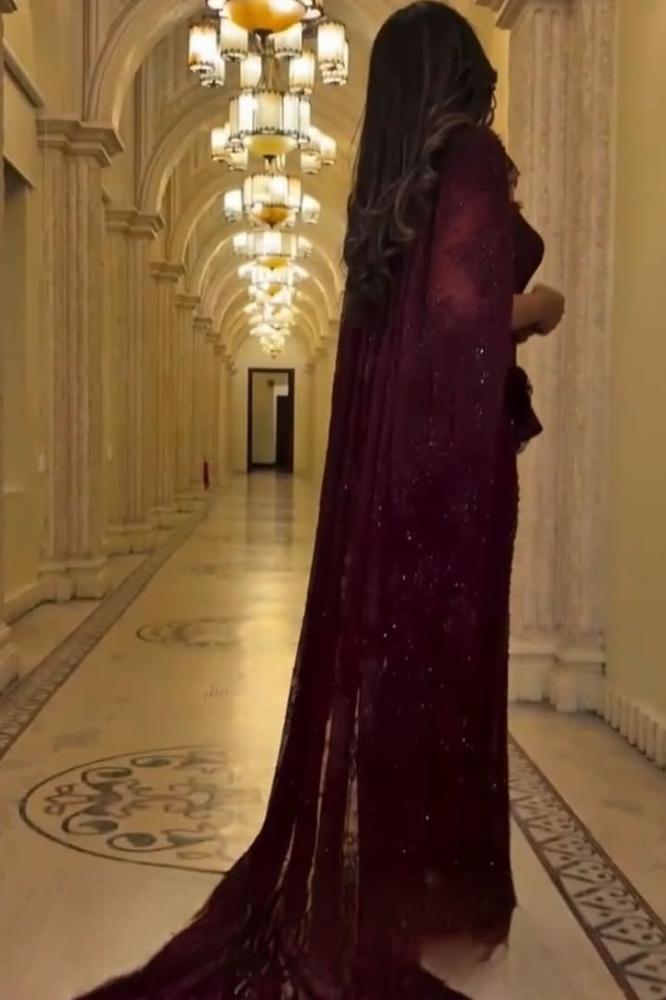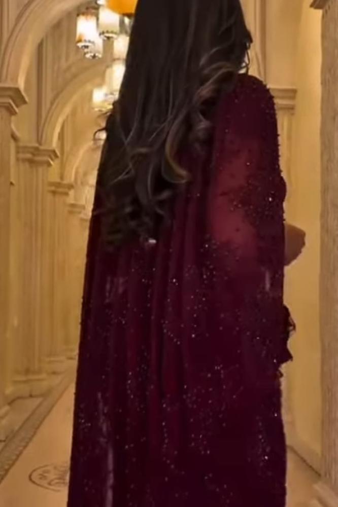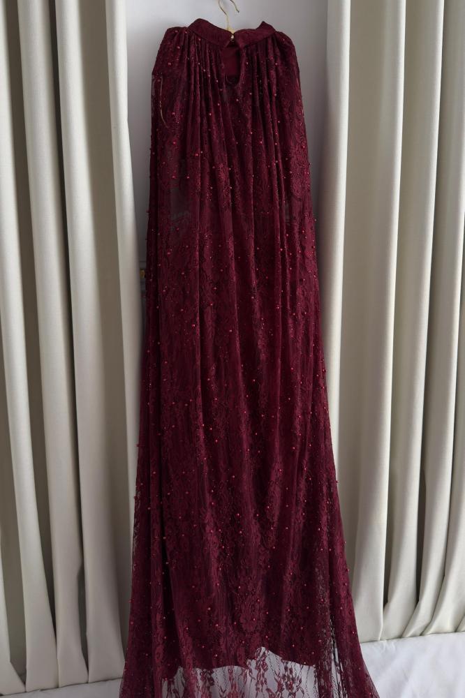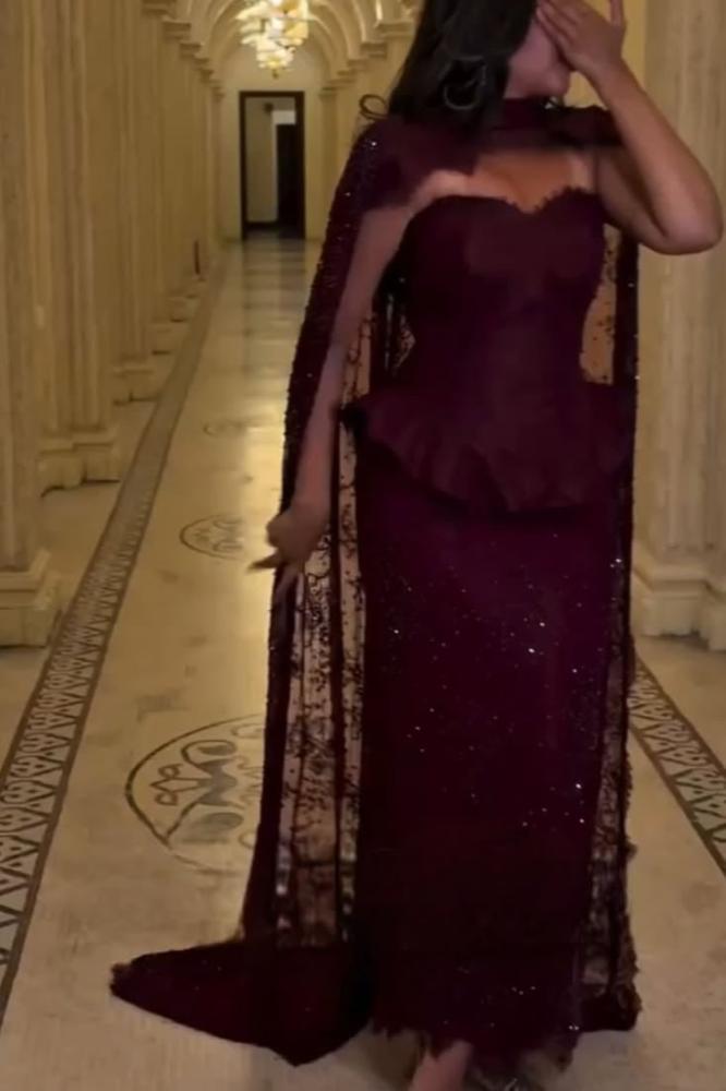 فستان سهرة فخم ومميز بالون العنابي .وهو مناسب للسهرات والمناسبات