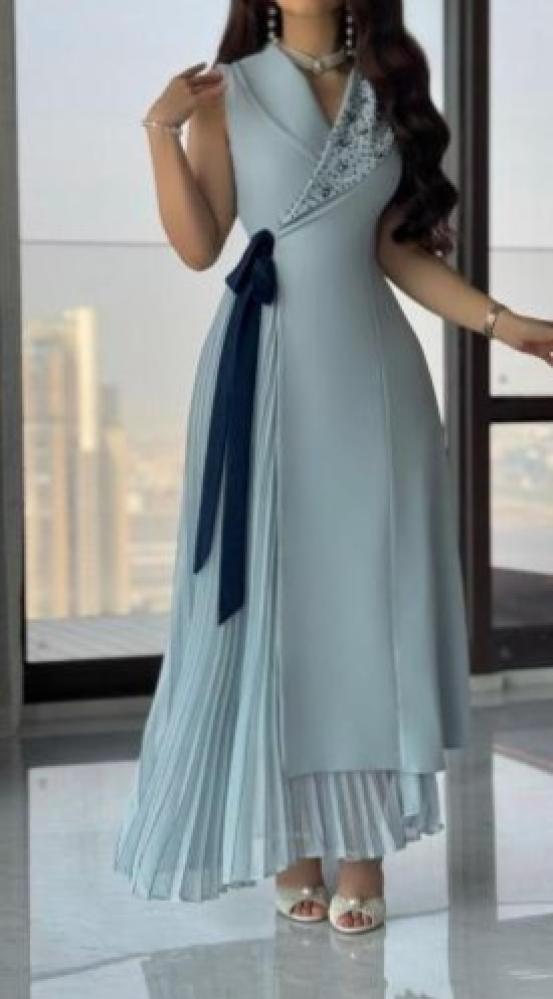 نوع القماش: كريب ناعم مع طبقة شيفون مطوية