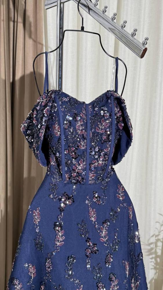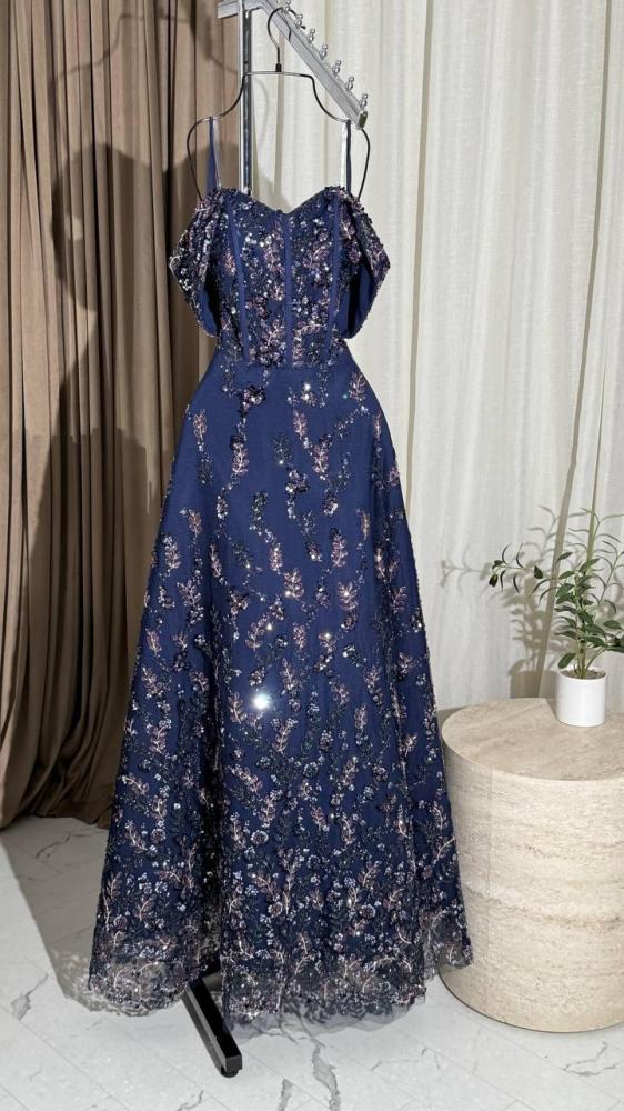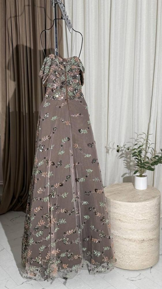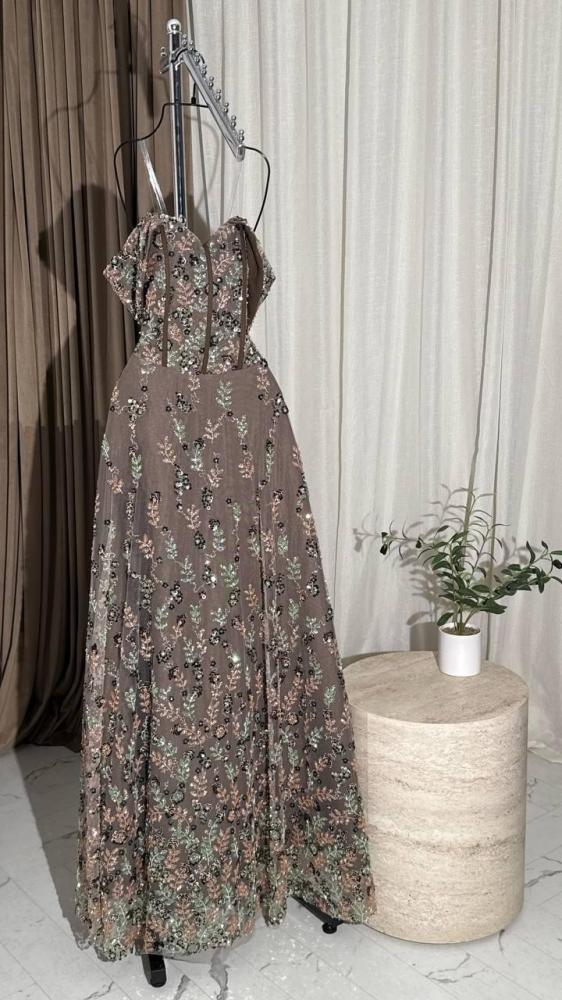 تطريز مشجرات لونين من قماش أربع طاقات دبل كلوش مع الجيبون تصاميم سهرات فاخرة جدًا
