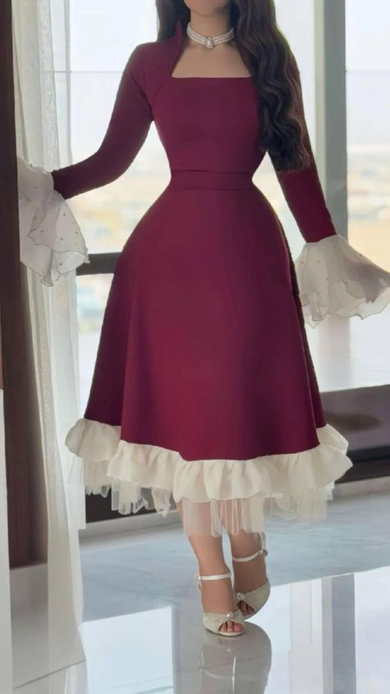 فستان الهبه ميدي كلوش بأكمام طويله مزينه