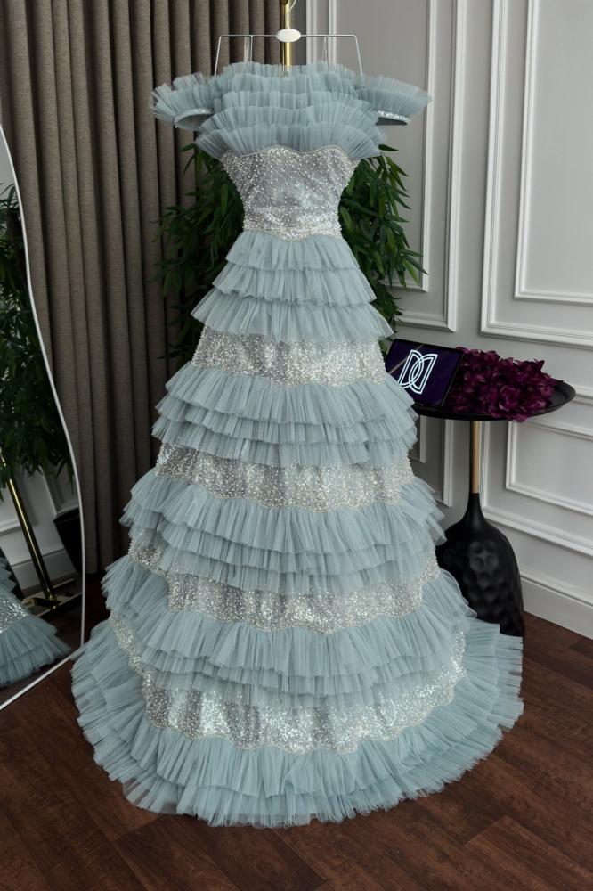 فستان سهره أوف شولدر لون سماوي