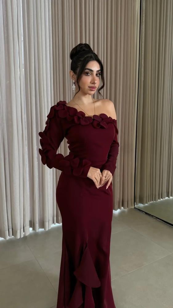 فستان ناعم باكمام طويله بعده اللوان