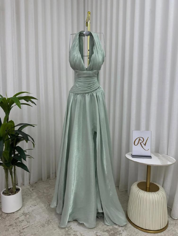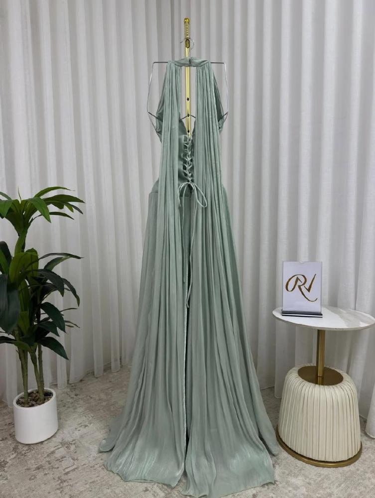 فستان سهرة طويل بلون مينت جرين