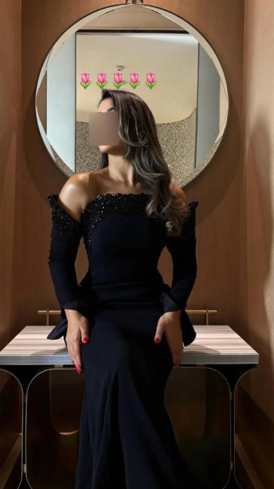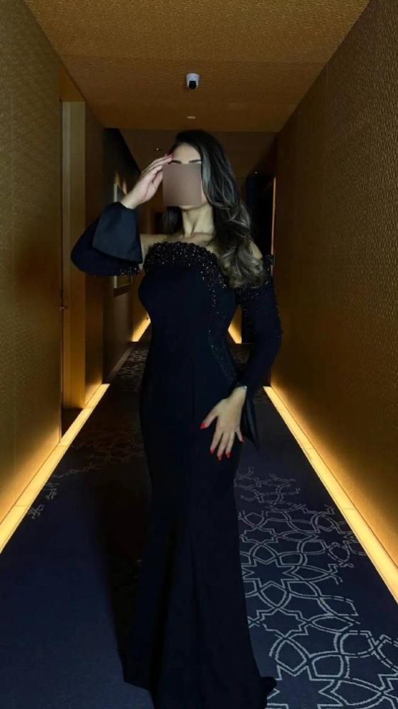 فستان سهره ناعم باكمامطويله لون اسود