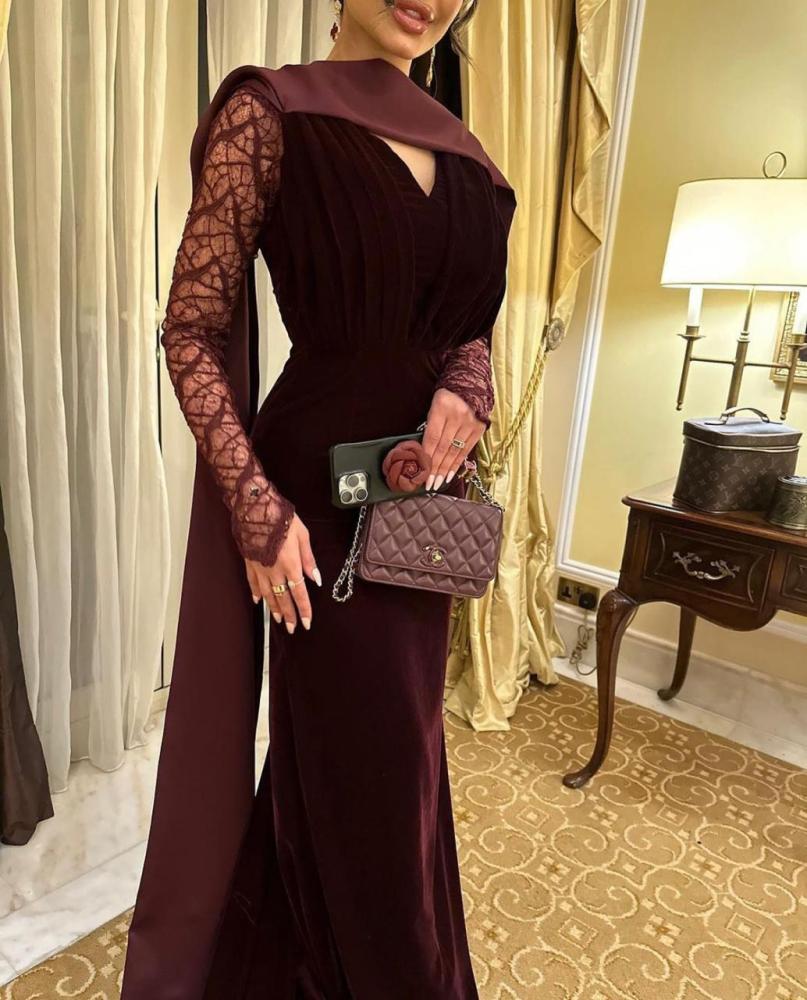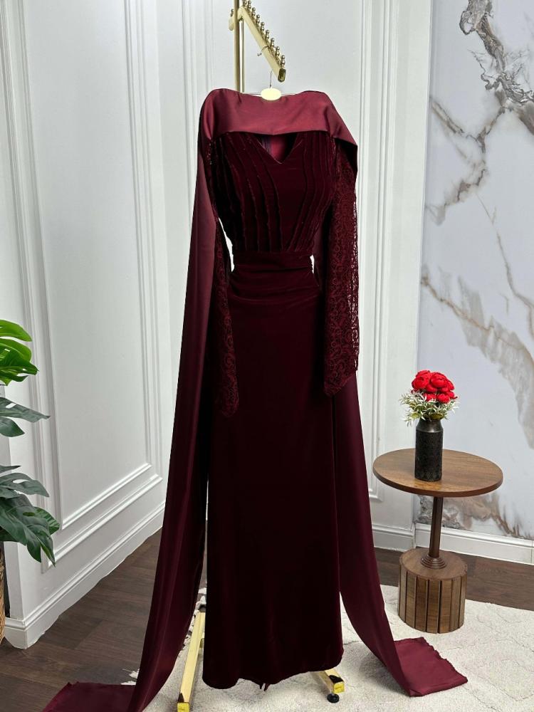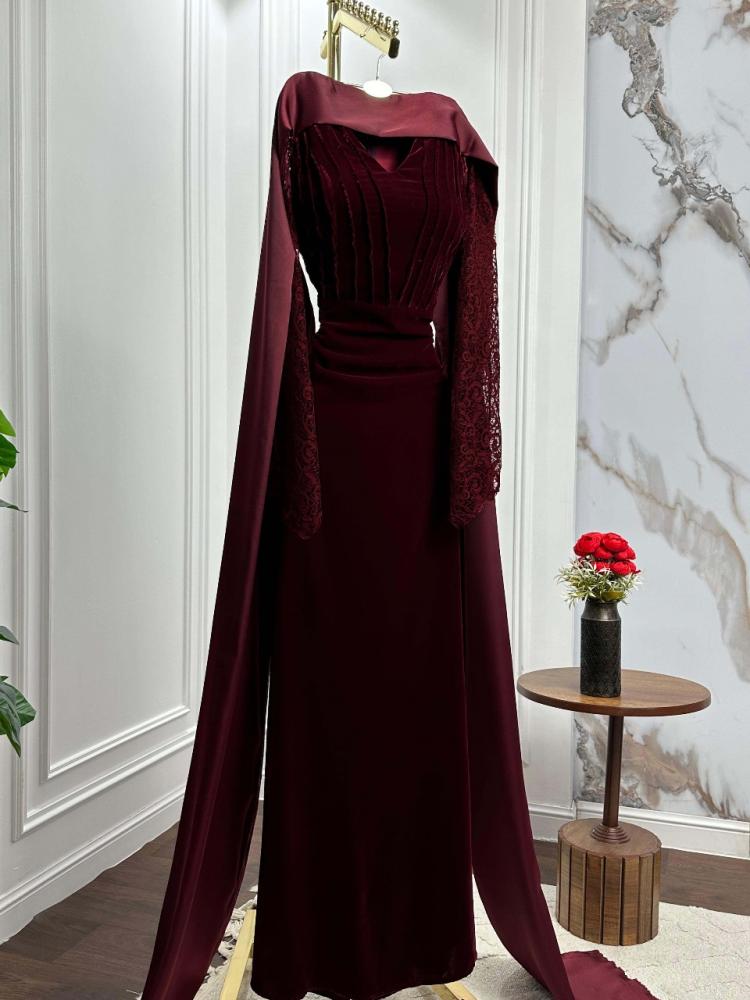 فستان سهرة فخم ومميز بالون العنابي .وهو مناسب للسهرات والمناسبات الخاصة.✨