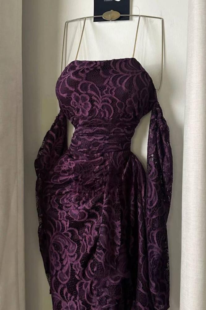 فستان يتميز بجاذبية راقية اللون بيج مزين بتطريزات صغيرة موزعة بشكل متناسق على كامل الفستان، قصة بدون أكمام وبصدرية ضيقة التنورة طويلة وواسعة تنساب بانسيابية، مع طبقة تول شفافة تنسدل من الخصر على جانب واحد،