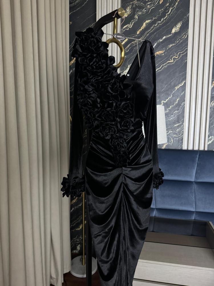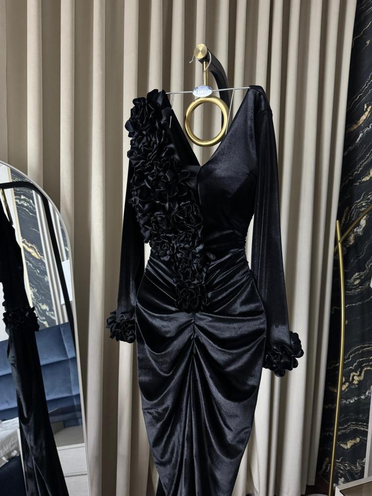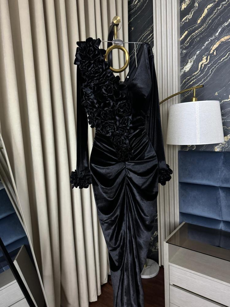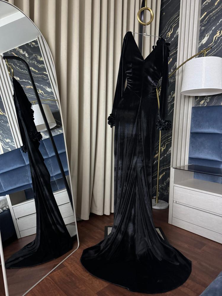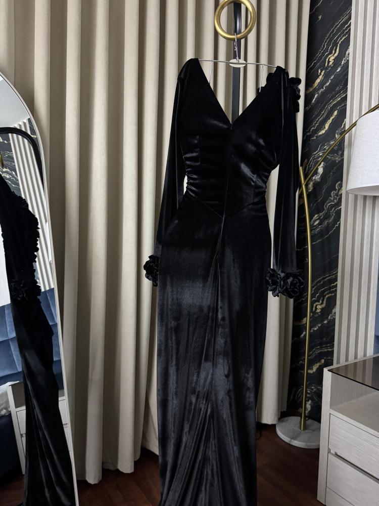 فستان الجازيه بتصميم فاخر يجمع بين الرقي والجاذبية. مصنوع من قماش المخمل الناعم الذي يتميز بلمسته الفاخرة، مع تطريز ورود بارزة تضيف لمسة من الأناقة والتألق. يتميز بخط عنق على شكل V يعزز الأنوثة، وأكمام طويلة تضفي لمسة كلاسيكية راقية. بطول 160 سم من الأمام مع فتحة أنيقة، و170 سم من الخلف لإطلالة مهيبة وملفتة. فستان مثالي للمناسبات الفاخرة بإحساس يجمع بين التميز والجمال