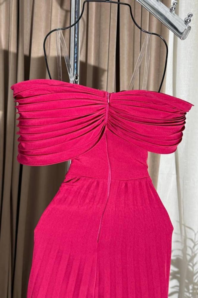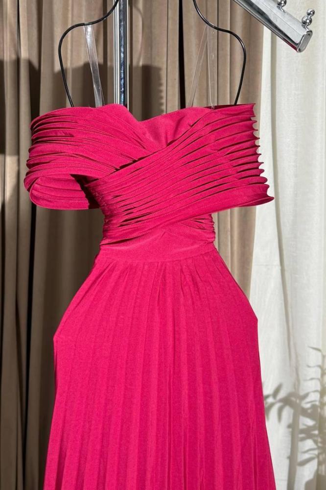 فستان أوف شولدر لون أحمر