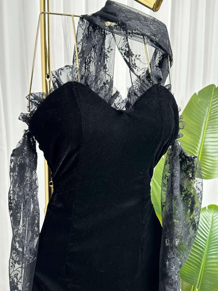 فساتين مخمل فساتين شتويه فستان مخمل لون اسود