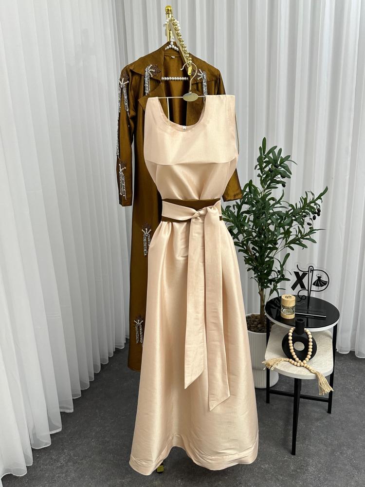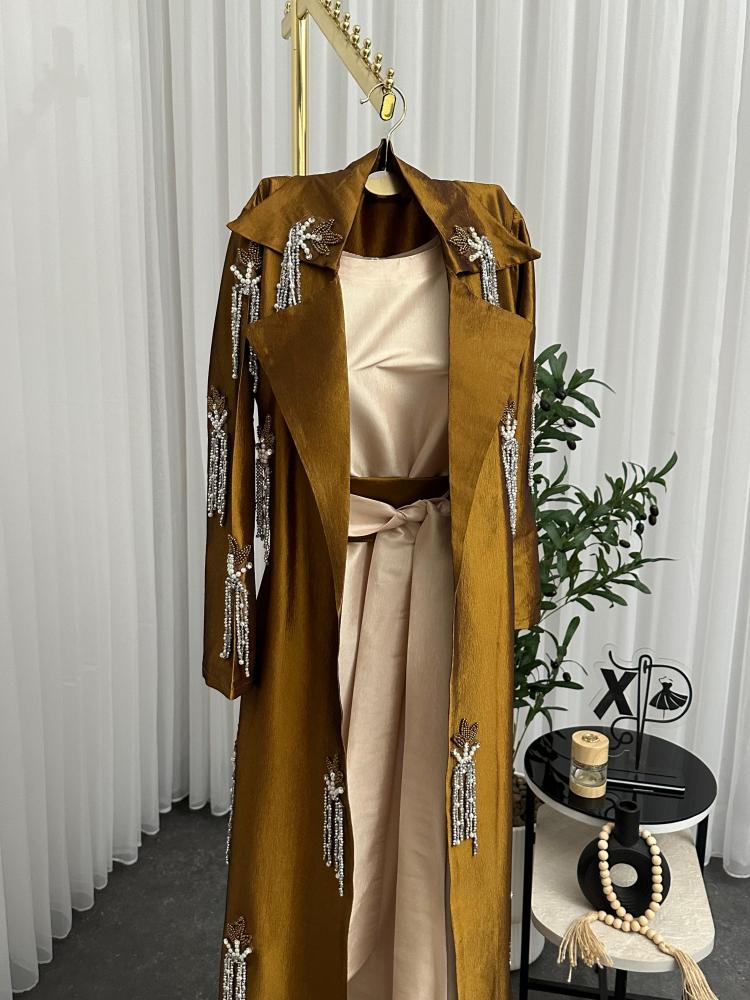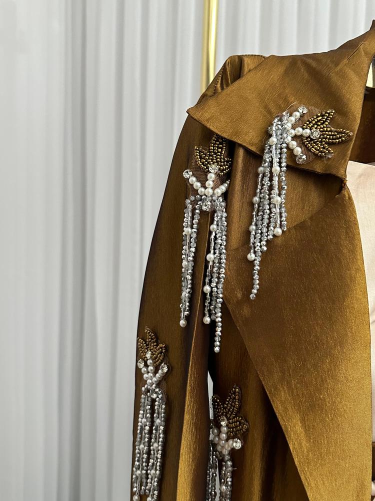 يغسل ويكوى بالبخار بدرجة حرارة منخفضة ويجفف بالتعليق